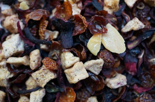 Hagebutten, Apfelstücke, Hibiscus, Mandelstücke, Aromen