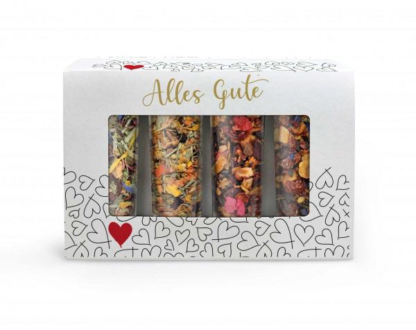4-er Tea Shot Alles Gute Beste Laune Kräutertee 12,2g Erdbeer Cranberry Früchtetee 17g Natürlich ...