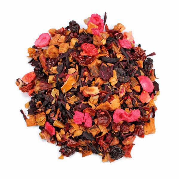 Apfelstücke,Hibiscus, Hagebutten, Nelken, Orangen-Zitronenschalen, Zimtstangen, Kornblumen, Aromen
