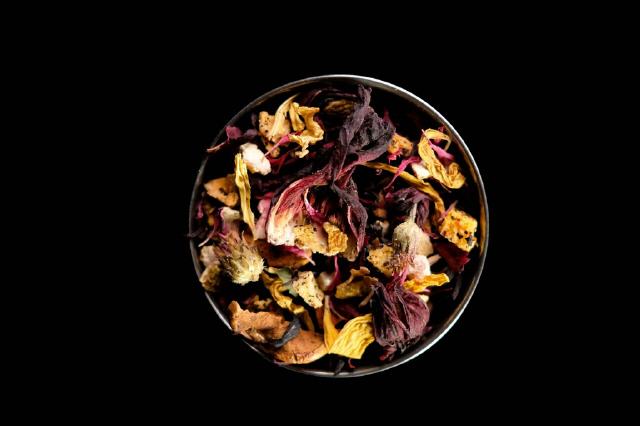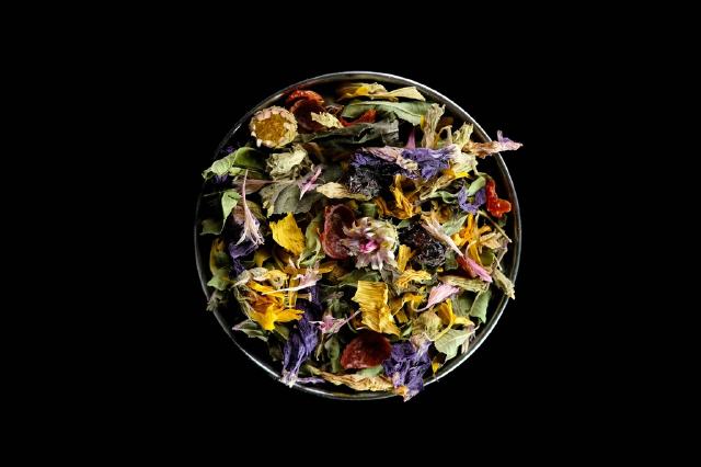 Unsere Kräutermischung mit Johannisbeeren Orangen Geschmack. Kräutermischung aromatisiert Zutate...