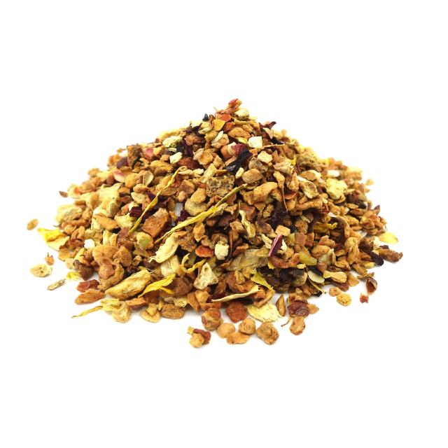 Würzig-frisch und leuchtend gelb, auch kalt ein Genuss! Früchtetee Zutaten: Ingwer, Ananas (Anan...