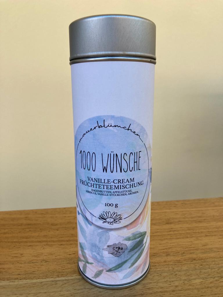 Teedose 1000 Wünsche gefüllt Teedose gefüllt mit 90g Vanille Cream Früchtetee (Zusammensetzung: Apfelstücke, Hibiscus, Hagebutten, Vanillestücke, Aromen.) Aktion war erfolgreich Das hat leider nicht geklappt. Warenkorb anzeigen Zur Kasse gehen Weiter einkaufen Produkt-ID: MB-TW Lieferbar in 3-5 Werktagen 15.00 CHF Alle Preise zzgl. Versand Gewicht: 0.18 kg Anzahl: St In den Warenkorb Auf den Merkzettel