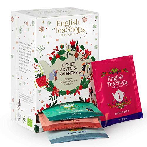 Tee-Adventskalender mit 24 verschiedenen Bio Teebeutel. 1. GUTE LAUNE: Brombeerblätter bio, Apfe...