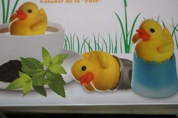 Schwimmente mit Teesieb. Praktisch mit Ablage zum Hineinstellen! Trendiges, fröhliches Zubehör!